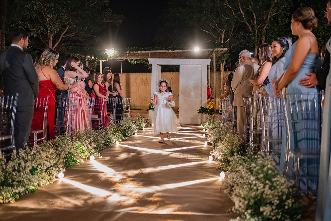 Essas luzes ficam lindas quando bem executadas e fracas, quando são muito fortes podem atrapalhar absurdamente os resultados das suas fotografias. Cuide da iluminação da cerimonia como um todo, pensando na luz projetada no rosto das pessoas e não apenas pensando no chão.